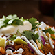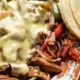 Rojos o verdes, costilla asada de res con crema, cebolla queso y frijol