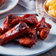 Suaves costillas BBQ bañadas en salsa de la casa acompañadas de ensalada y puré de papa