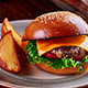 Deliciosa hamburguesa 100% res con lechuga, queso manchego, cebolla y jitomate acompañada de papas gajo