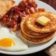 Consiente tus mañanas con nuestros esponjosos hotcakes acompañados de huevo al gusto y crujiente tocino. Esta combinación clásica ofrece el equilibrio perfecto entre lo dulce y lo salado