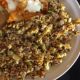 Relleno de queso de cabra y espinca acompañado de frijoles